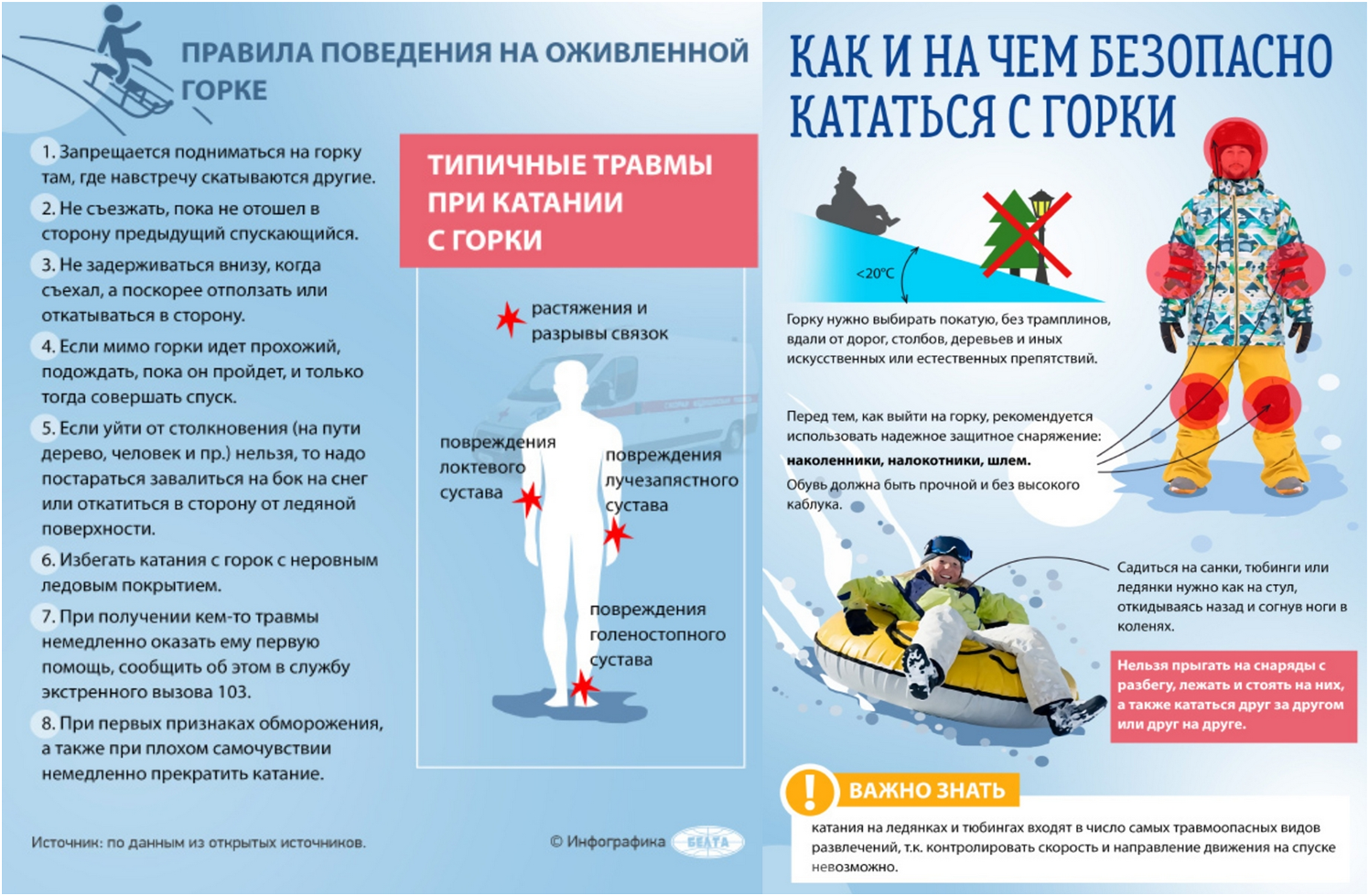 — Кататься на санках-ватрушках следует сидя. Не пытайтесь кататься на «ватрушке» стоя или прыгая как на батуте.